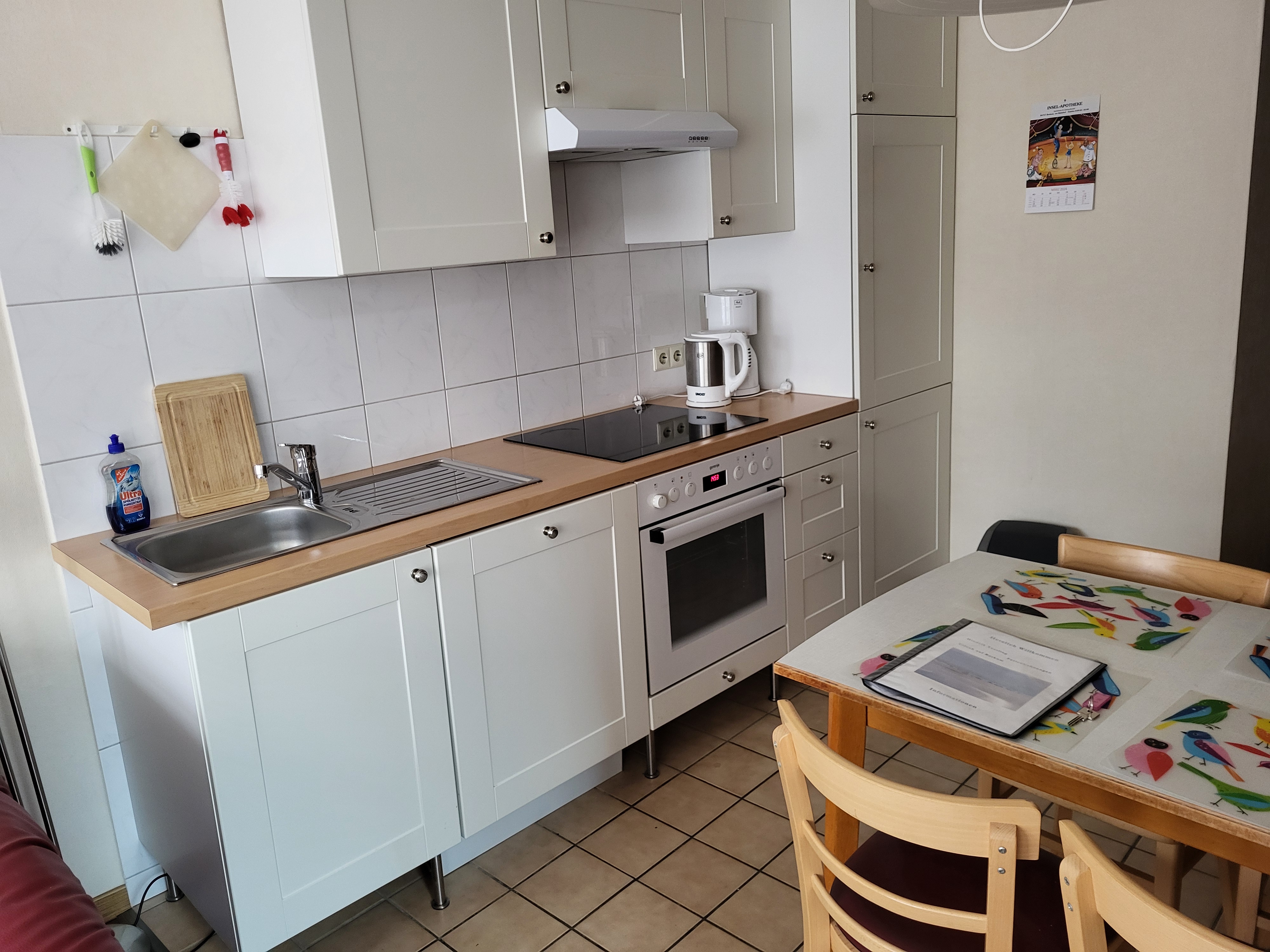 Terrasse. Küche mit 4-Platten-Ceranfeld, Backofen, Spülmaschine,